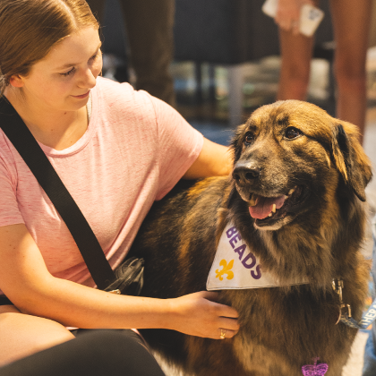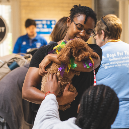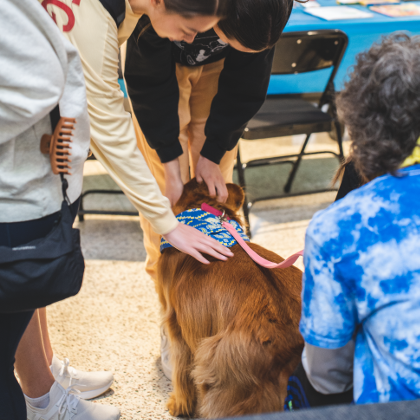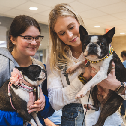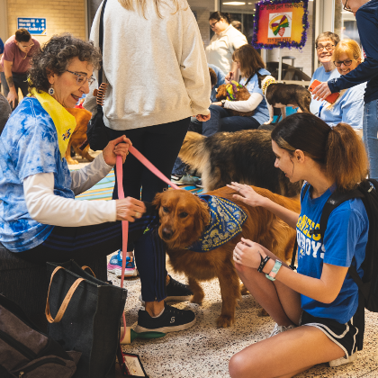 Dogs of all sizes were on campus to help students relax and de-stress from all school activities. There was also free pizza and drinks provided.
